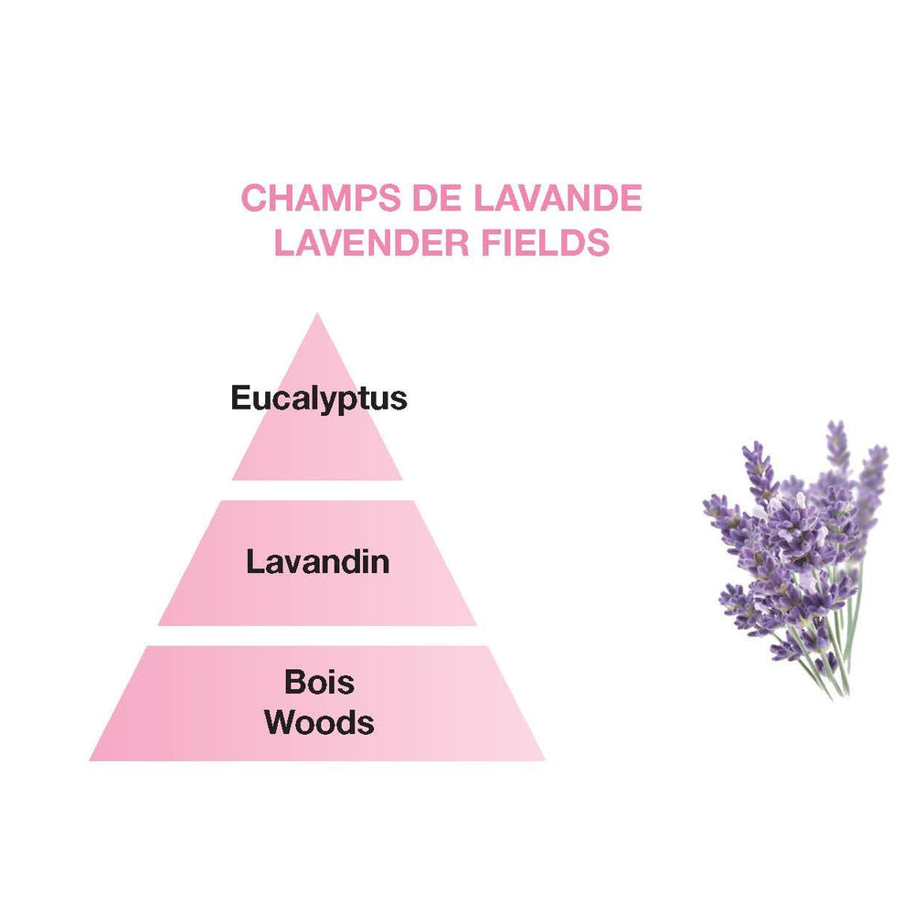 The beauty of lavender fields in the South of France in an aromatic fragrance, with fresh eucalyptus and pear notes. The feeling of a summer in Provence in a delicate and lively fragrance.